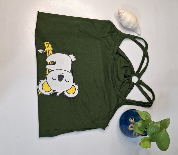 ✔️این تاپ پشتحلقهای از جنس ویسکوز نرم و سبک دوخته شده و لباسی راحت و خنک بهحساب میآید. طرح کوآلای چاپشده جلوهای فانتزی و دوستداشتنی به آن میدهد. بهصورت فریسایز ارائه شده و برای سایزهای ۳۸ تا ۴۴ مناسب است. پارچه خاصیت کشسانی ملایم دارد و فرم بدن را خوشفرم نمایش میدهد.