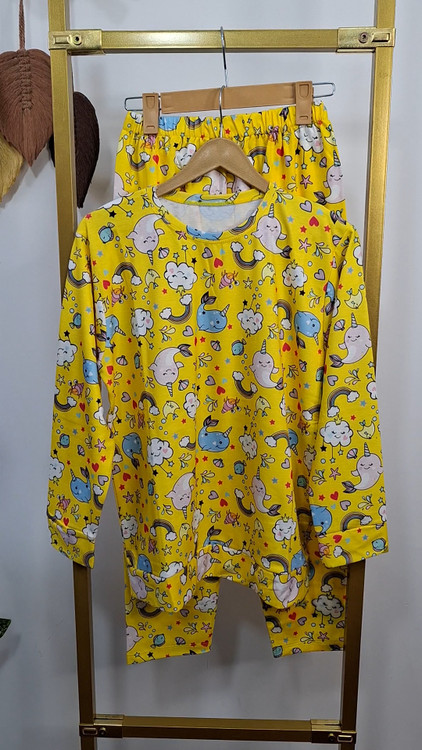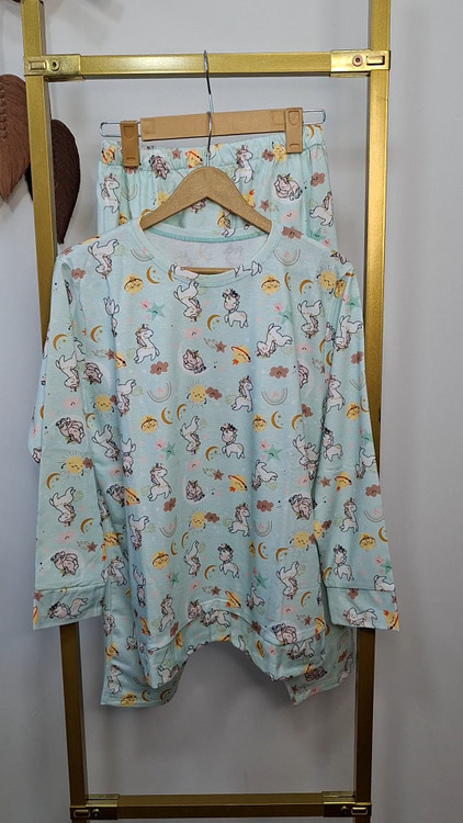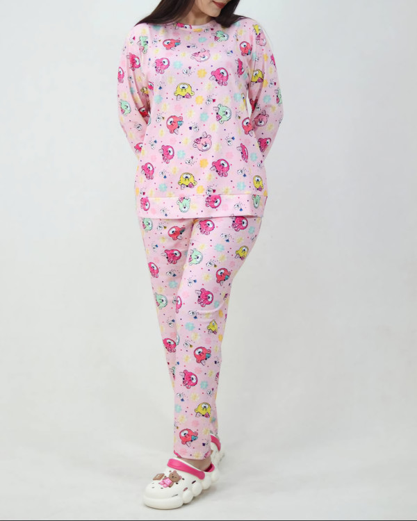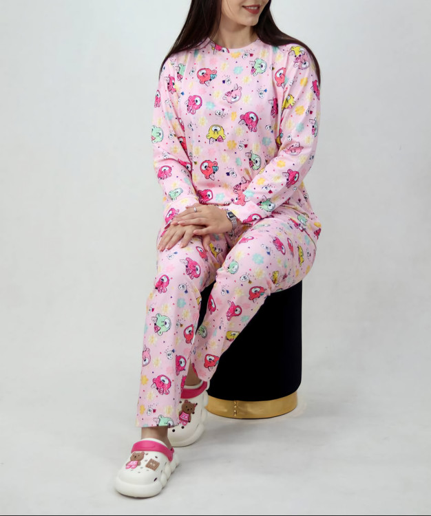 این ست بهصورت فریسایز بوده و مناسب سایزهای ۴۰ تا ۴۶ میباشد. پارچه حالت کشسان دارد و روی بدن راحت مینشیند. طرحهای شاد و عروسکی جذاب، این مدل را به گزینهای محبوب تبدیل کرده است.